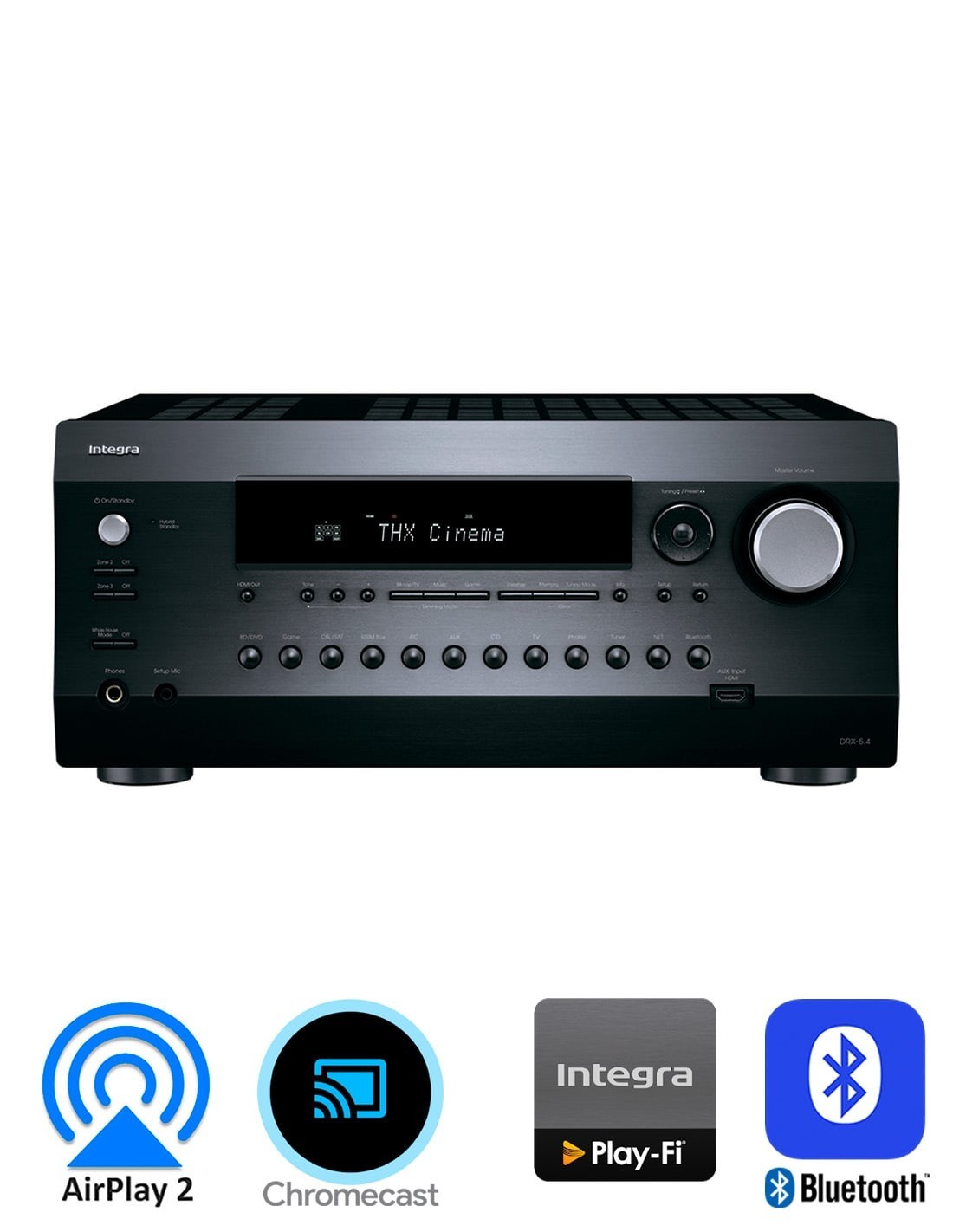 Потоковая передача музыки со смартфона, ноутбука или ПК на ресивер Integra DRX 5.4 через встроенный Chromecast и управление воспроизведением из приложений с поддержкой Chromecast с iPhone, iPad, телефона или планшета Android™, Mac или ПК с Windows® или Chromebook™. Отмечайте, воспроизводите и управляйте звуком, просто используя свой голос.