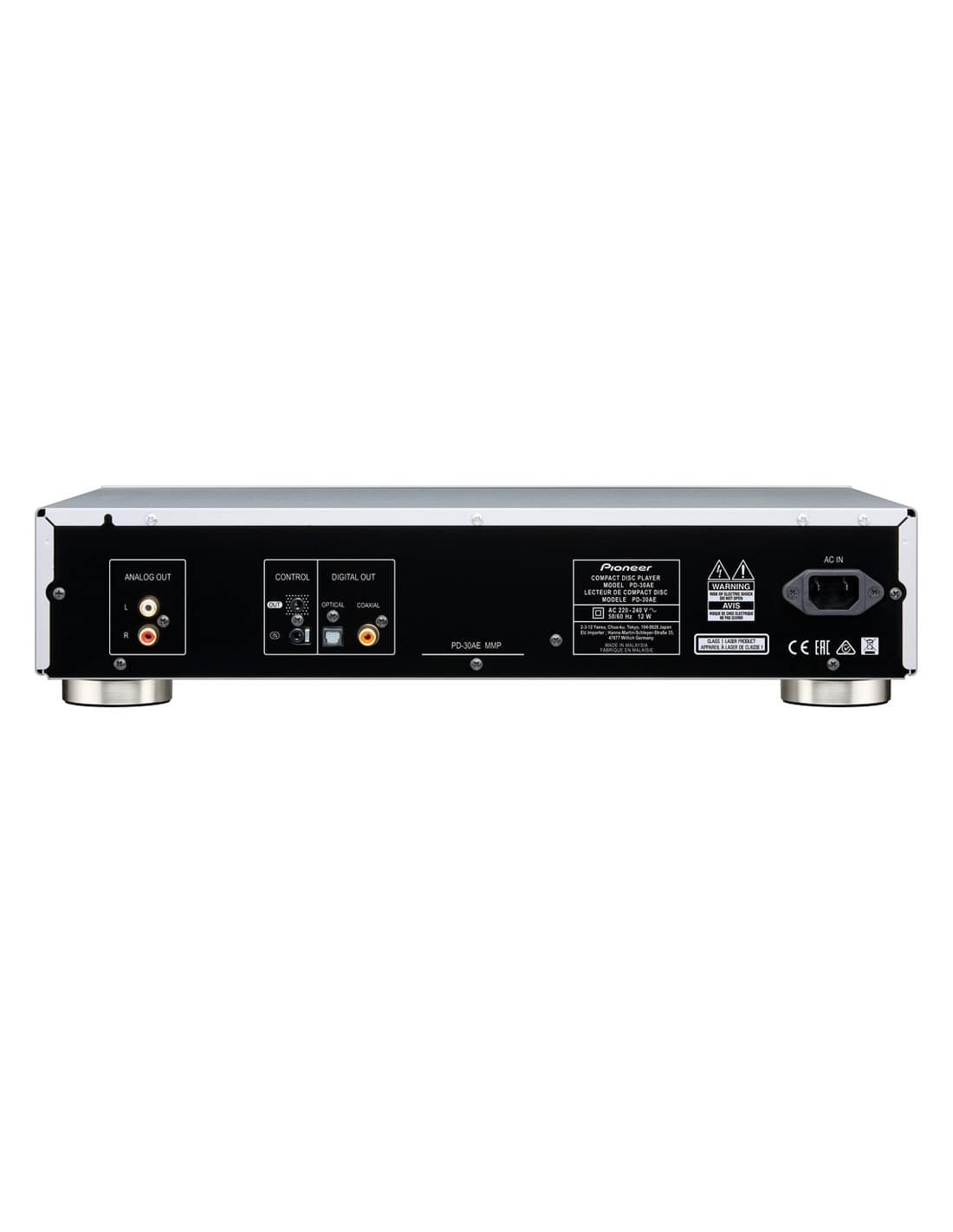 Благодаря оптическому и коаксиальному цифровым выходам преобразователя, Pioneer PD-30AE также может использоваться внешними проигрывателями — даже без использования подключенного усилителя благодаря встроенному регулируемому разъему для наушников.