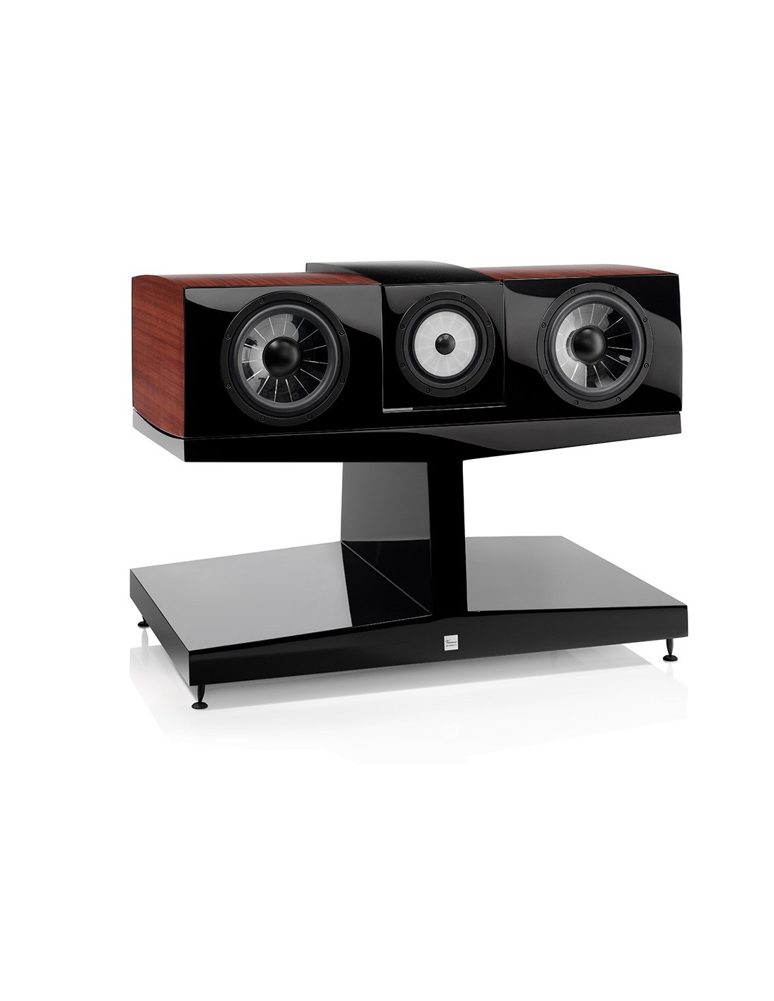 При использовании его в качестве центрального канала, идеального результата можно достичь с нашей моделью серии Klimt, The Music. В нем использована та же запатентованная технология Flat-Spider-ConeТ, которая обеспечивает чистоту вокала и непревзойденную дисперсию. В нем так же использован шелковый твиттер ручной работы и плоский Сч динамик (такой же, что использован в ас The Music). Средняя часть поворачивается в вертикальном направлении, что позволяет создать вместо узкой плоской зоны объемный, широкий спектр идеально воспроизводимого звука. С помощью изменения угла направления динамиков Вы можете перераспределять направление воспроизведения звука по аналогии со светом от ручного фонарика, создавая зоны идеального звучания там, где Вам будет удобно. Кроме того, настройка воспроизведения может производиться относительно акустических особенностей комнаты, в которой установлена система, максимально используя ее плюсы и сглаживая недостатки, что делает звучание оптимальным. C двух сторон от Сч динамика, находятся запатентованные Нч динамики Spider-ConeТ, акустическое оформление для каждого из них Г фазоинвертор. Устройство доступно в двух вариантах отделки корпуса.