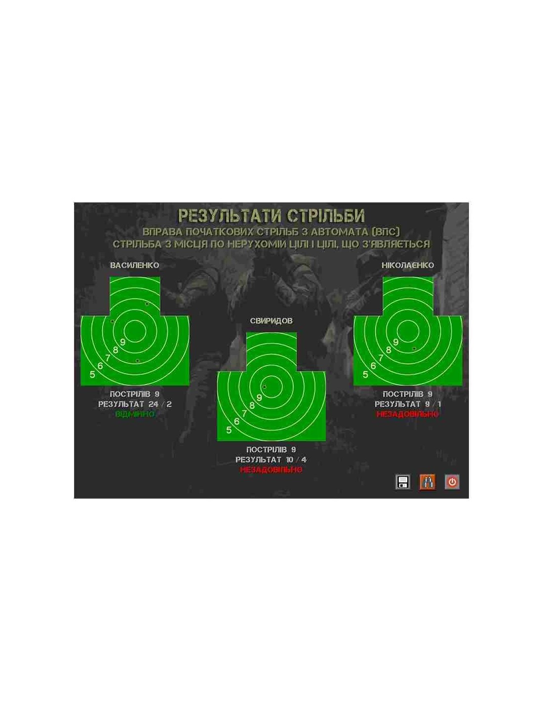 - возможность выбора типов мишеней и сценариев выполнения упражнений