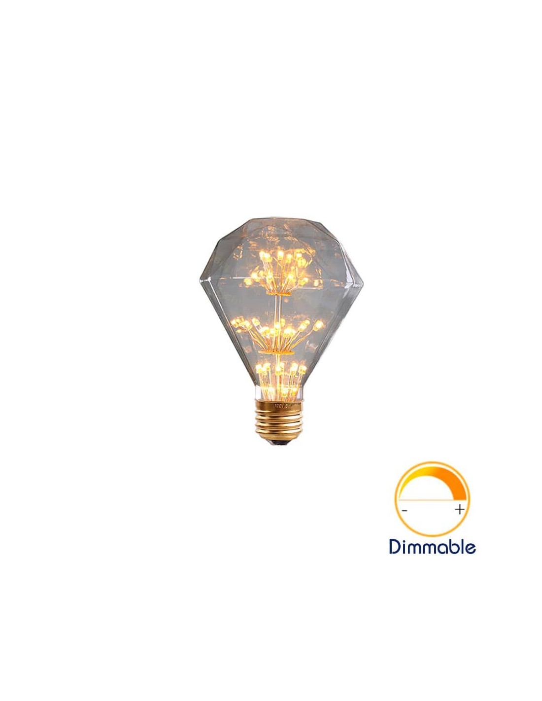 Светодиодная лампа G95 Diamond Firework ― это декоративная дизайнерская лампа, колба которой выполнена из кристально-чистого стекла и имеет форму Бриллианта. Внутри колбы лампы встроены 45 супер ярких светодиодов Straw Hat, и расположены таким образом, что при свечении напоминают Фейерверк, или кусочек ночного неба, усеянного звездами. Лампа потребляет всего 3 Вт, в то время как лампа накаливания с сопоставимой светоотдачей потребляет 25-30 Вт. Цветовая температура лампы 2200 К, слегка желтоватое, мягкое, теплое свечение.