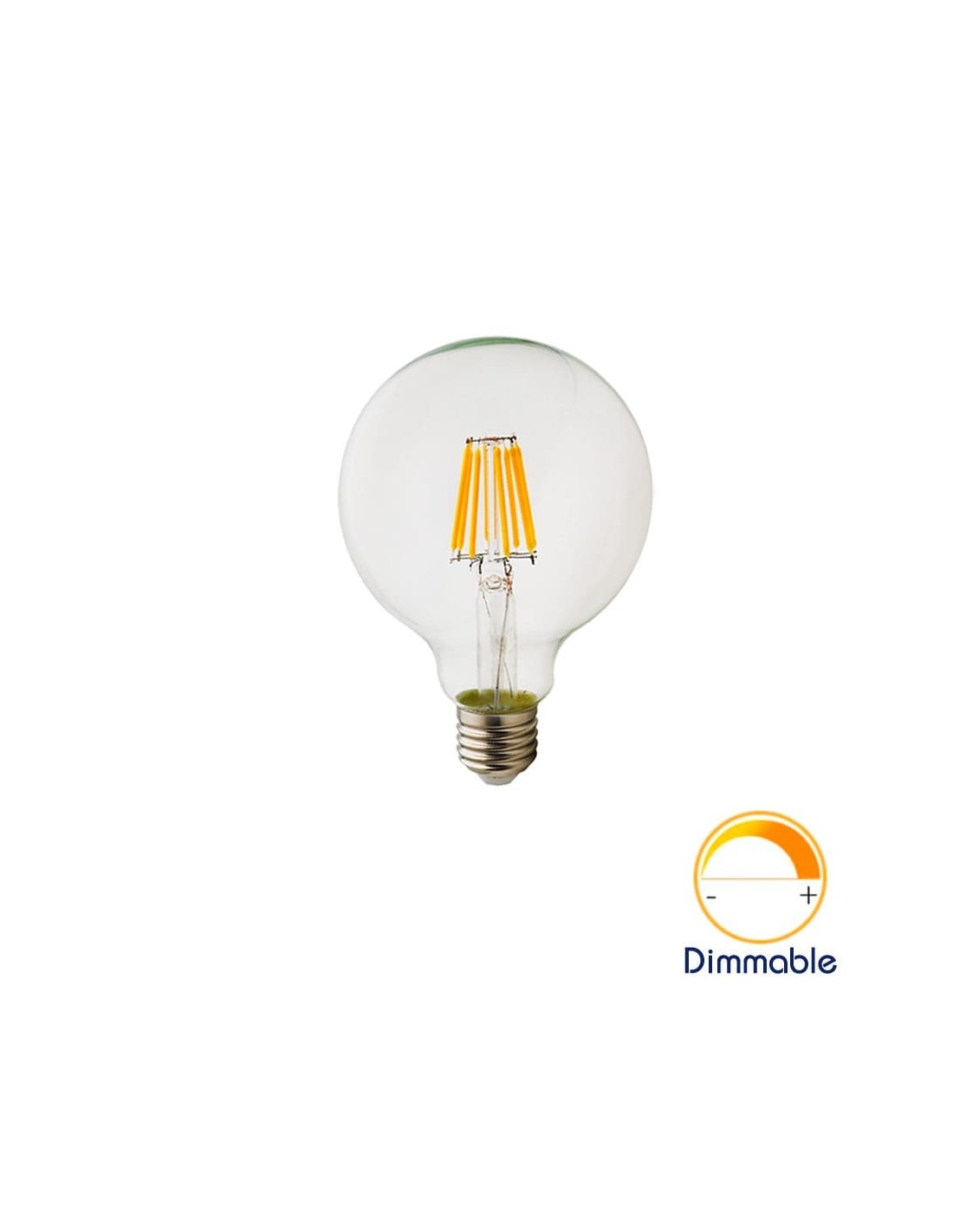 Диммируемая! Светодиодная филаментная лампа G125 Retro поддерживает функцию диммирования, т.е. Вы можете регулировать яркость лампы с помощью специального устройства - Z-Wave диммера или WiFi Smart диммера. Это позволяет создавать разнообразные световые сцены с разными уровнями яркости свечения ламп.