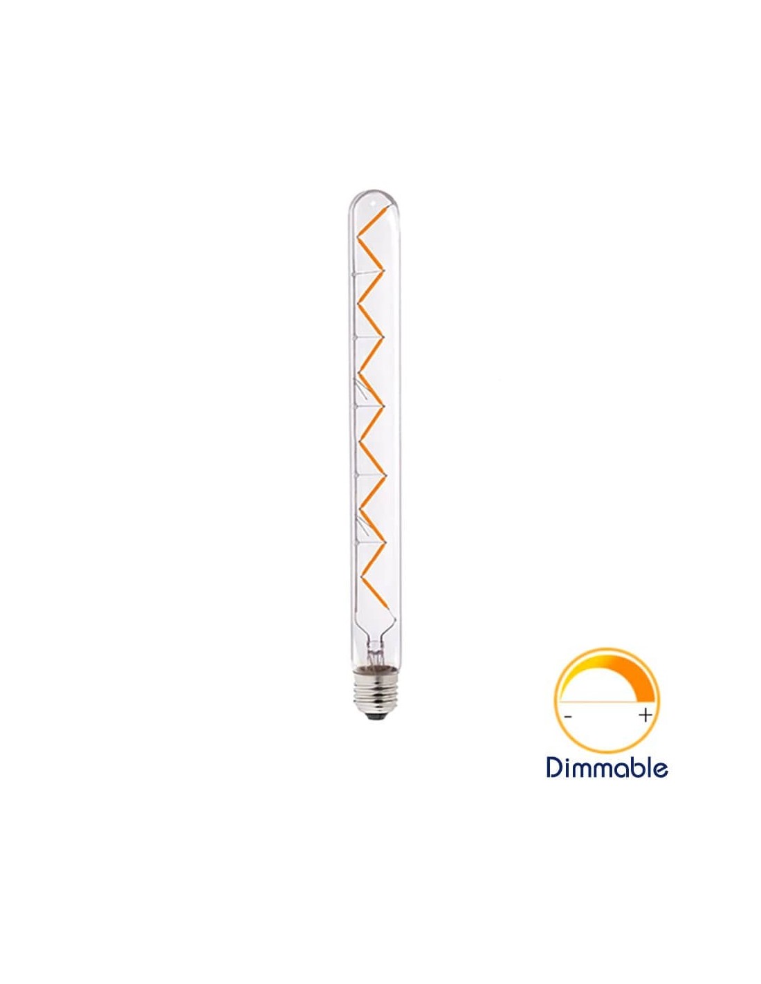 Диммируемая дизайнерская филаментная светодиодная лампа. Цвет свечения Теплый Белый; цветовая температура 2200 К. 12, встроенных зигзагообразно, прямых светодиодных нитей. Угол свечения светодиодной лампы 360 градусов. Питание 220V AC. Мощность 6W. Цоколь E27. Ресурс лампы - до 50000ч. Размеры (Диам. х В): 30 х 300 мм, вес 0,07 кг.