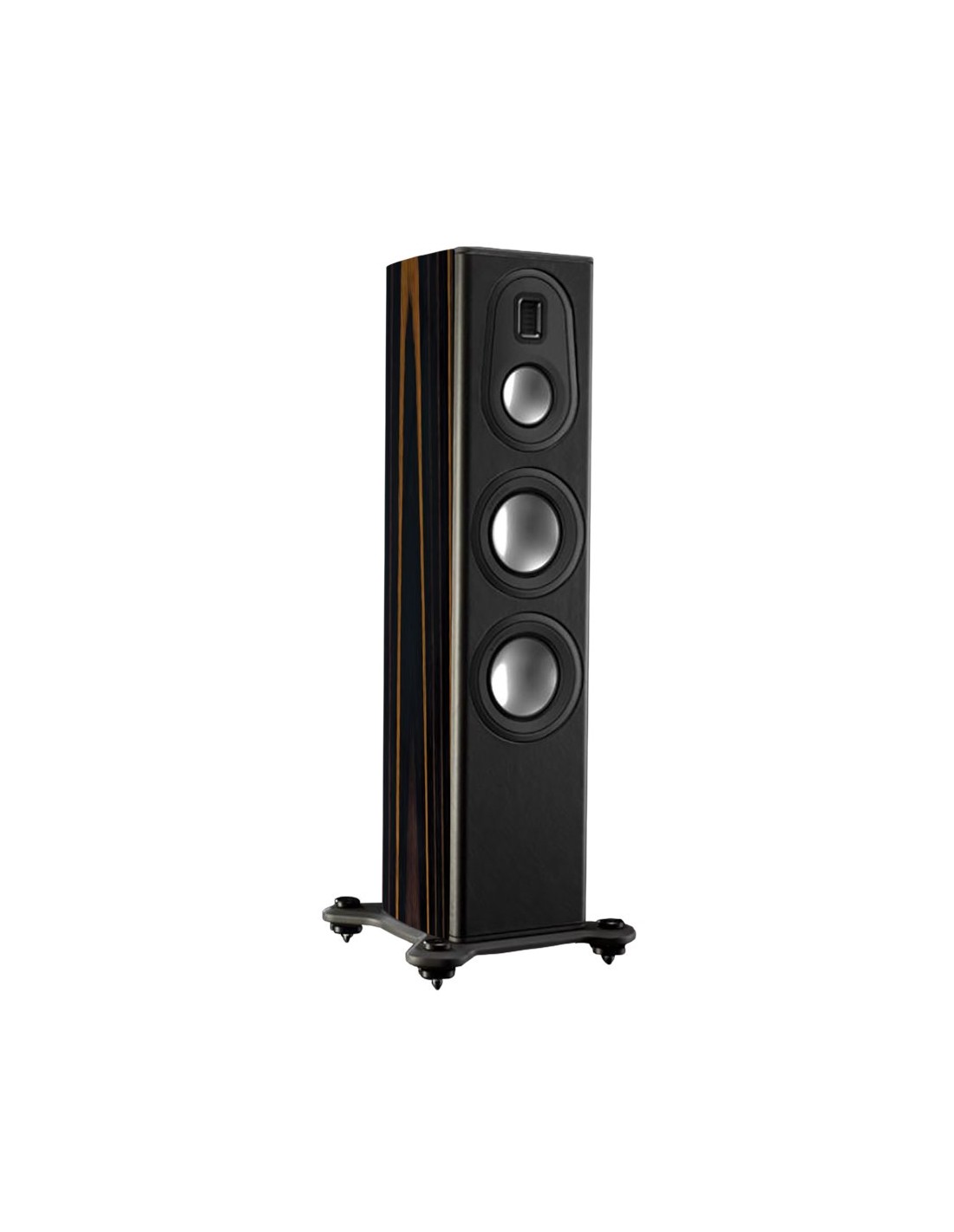 За воспроизведение высоких частот в колонках Monitor Audio Platinum PL200 II отвечает фирменный ленточный твитер, ставший своеобразной визитной карточкой высококлассной акустики этой фирмы. Излучающим звук элементом в нем является тончайшая мембрана, площадь которой значительно превышает площадь поверхности купола традиционной пищалки. Такой твитера имеет широкий диапазон рабочих частот, а благодаря специальной накладке на передней панели его диаграмма направленности широкая и равномерная.