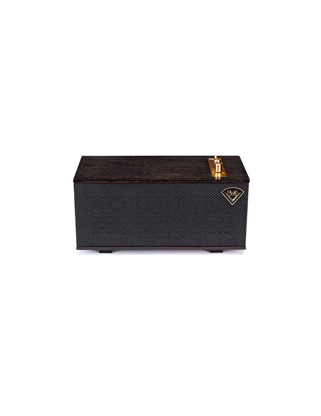 Акустические системы Klipsch The One входят в серию Heritage Wireless и выполнены в узнаваемом дизайне колонок этой фирмы, разработанном в 60-х годах прошлого века. В отделке Klipsch The One, которая выполнена с очень высоким качеством, используется шпон натурального орехового или черного дерева, а также медные декоративные элементы. На защитной сетке колонок красуются исторические логотипы Klipsch, точно такие, как и на классических моделях серии Heritage.