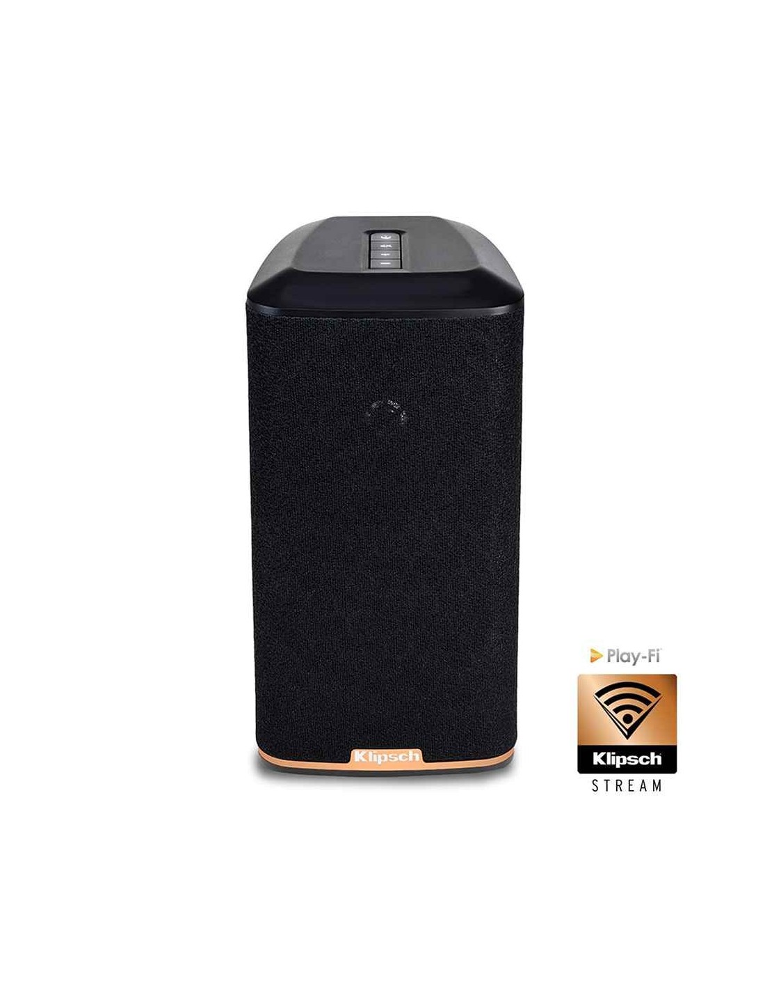 Активная акустическая система, беспроводная мультирум система Klipsch Stream. ВЧ диффузор (19 мм) из алюминия, рупор Tractrix®, НЧ диффузор (89 мм) из металлокерамики. Воспроизводит потоковый аудио сигнал по Wi-Fi и/или Ethernet. Мощность усилителя: 30 Вт – 60 Вт (RMS). Частотный диапазон: 28 Гц – 20 кГц. Уровень звукового давления (SPL): 100 дБ. Размеры (ШхВхГ): 127x228,6x127 мм, вес: 1,77 кг.