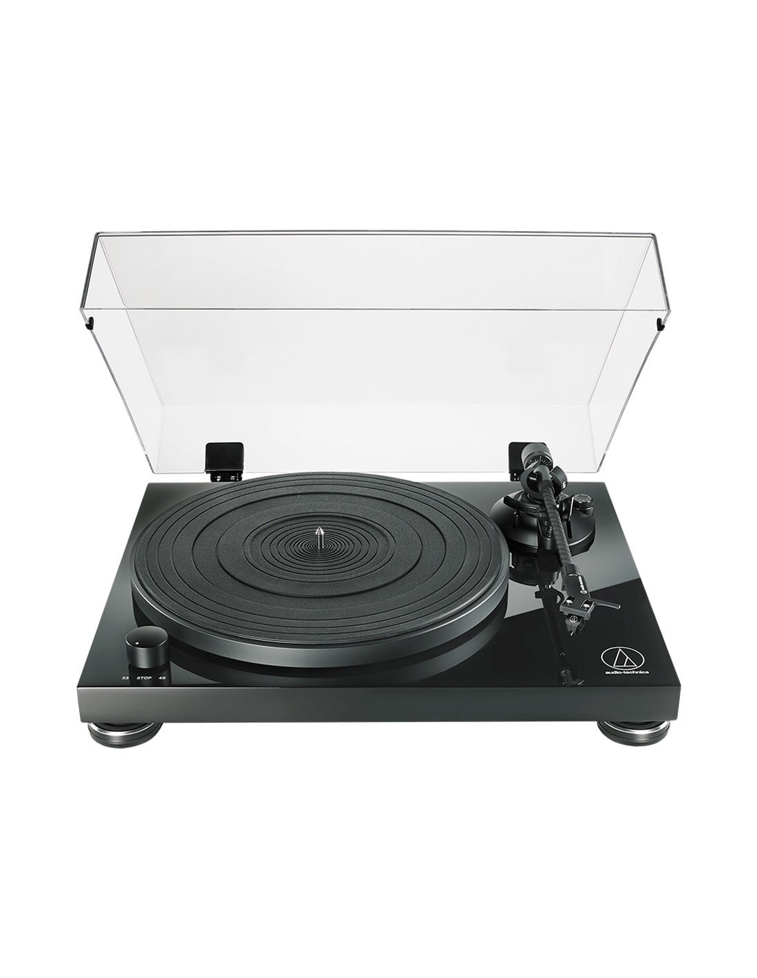 Audio-Technica AT-LPW50 — это полностью ручной проигрыватель виниловых дисков с ременным приводом, разработанный для обеспечения оптимального воспроизведения звука высокой точности с винила. Двухскоростной 33-1/3 и 45 об/мин проигрыватель имеет эстетически приятный антирезонансный цоколь из МДФ (древесноволокнистой плиты средней плотности) толщиной 30 мм с черной глянцевой рояльной отделкой для гашения низкочастотной акустической обратной связи, а также двигатель с датчиком контроля для обеспечения точной скорости вращения диска.