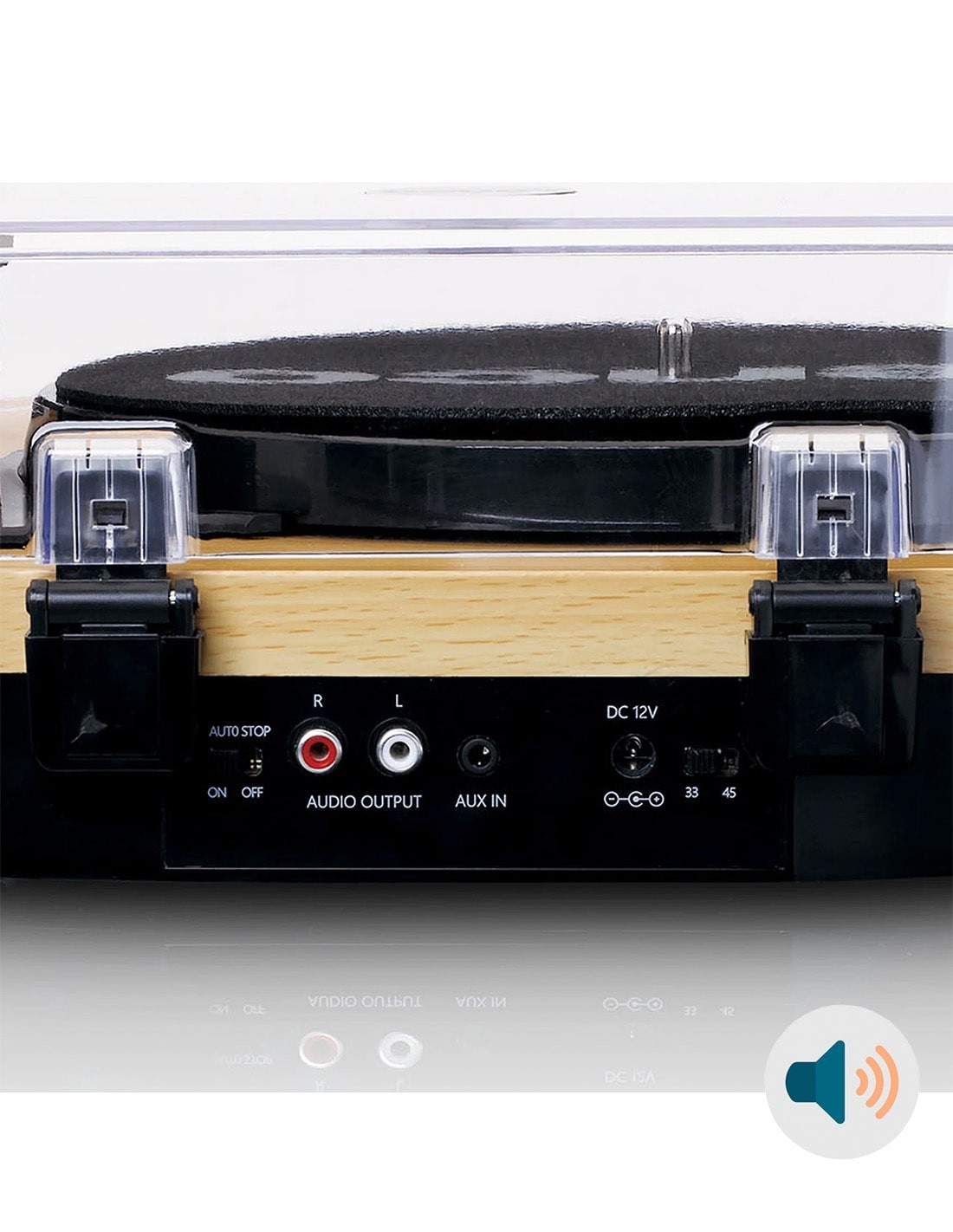 Для большей громкости используйте разъем RCA на задней панели проигрывателя, позволяющий подключать внешние колонки к проигрывателю. Таким образом, Ваша комната еще больше наполняется музыкой.