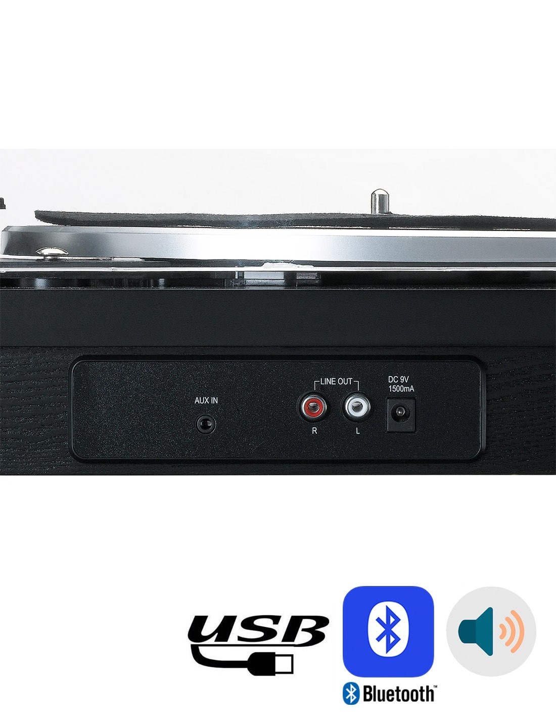 Полуавтоматический стереопроигрыватель виниловых дисков со встроенной акустикой. Ременной привод, полуавтоматическое управление с тремя скоростями: 33-1/3, 45, 78 об/мин, функция Автостоп. Керамический картридж с иглой (N-10). Мощность акустики: max 10 Вт (2х5 Вт). Беспроводная технология Bluetooth®, USB вход с функцией проигрывателя или оцифровки записей на флешку. Вход AUX мини-джек 3,5 мм для внешних источников, RCA выход Line Out с уровнем 400-600 мВ. Размеры (ШхВхГ): 435x145x370 мм. Вес 4,38 кг.