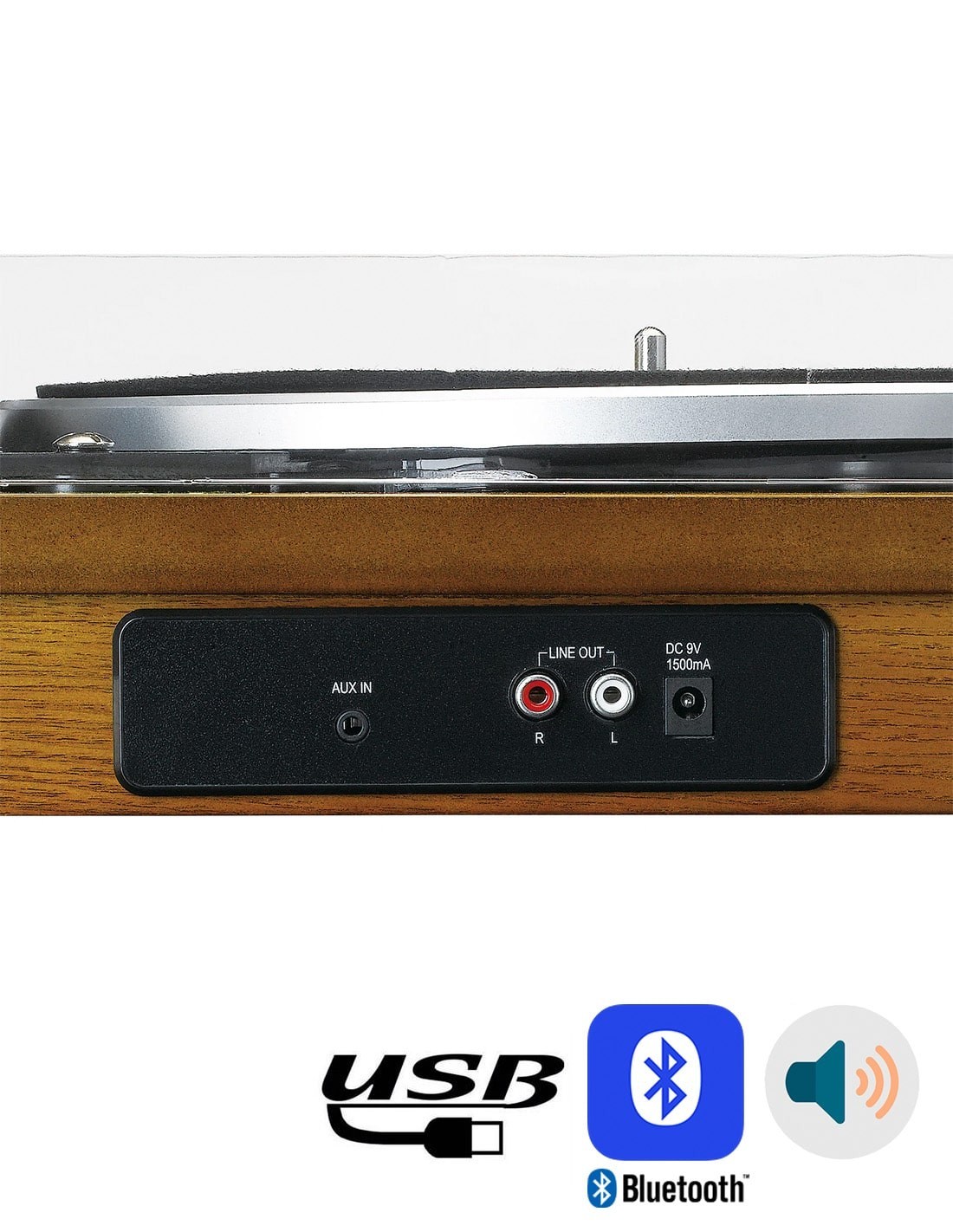 Полуавтоматический стереопроигрыватель виниловых дисков со встроенной акустикой. Ременной привод, полуавтоматическое управление с тремя скоростями: 33-1/3, 45, 78 об/мин, функция Автостоп. Керамический картридж с иглой (N-10). Мощность акустики: max 10 Вт (2х5 Вт). Беспроводная технология Bluetooth®, USB вход с функцией проигрывателя или оцифровки записей на флешку. Вход AUX мини-джек 3,5 мм для внешних источников, RCA выход Line Out с уровнем 400-600 мВ. Размеры (ШхВхГ): 435x145x370 мм. Вес 4,38 кг.