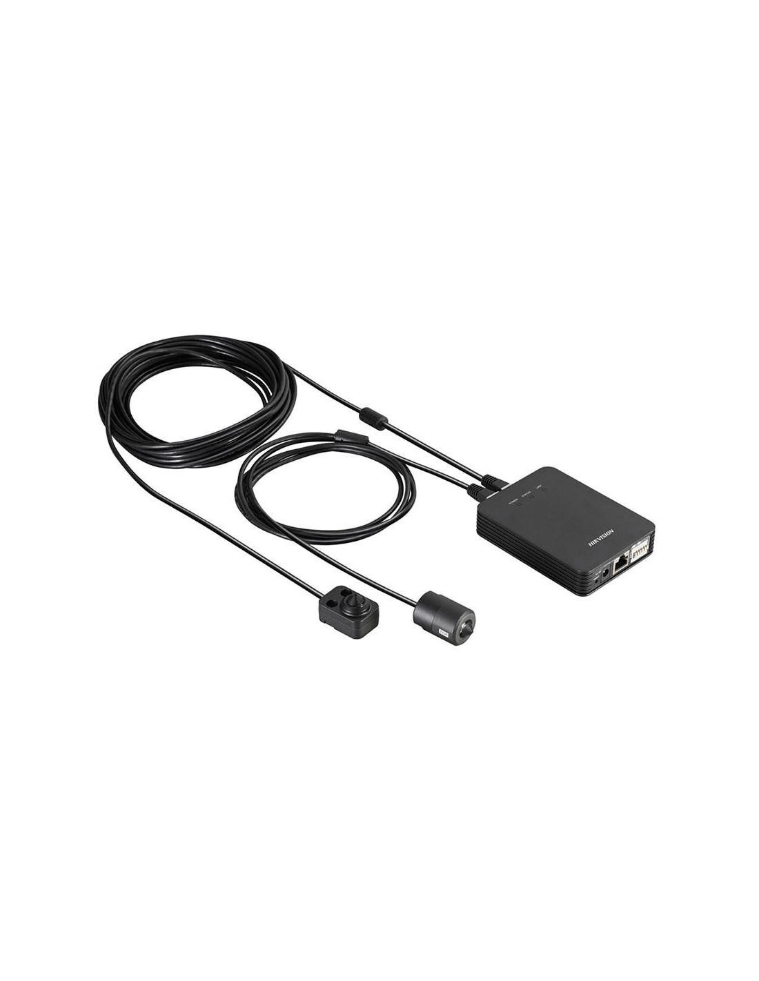 IP видеокамера с выносным объективом DS-2CD6412FWD-30 разработана в компании Hikvision для систем безопасности банкоматов, депозитариев, билетоматов и других автоматов самообслуживания, где установка традиционных типов камер затруднительна. Конструктивно представляет собой раздельные видеомодуль и электронный блок управления, которые связываются кабелем длиной 2 м или 8 м. Модель поставляется с объективами под заказ. Угол обзора может составлять 73.1, 120, 92.5 или 46°. В зависимости от охвата эту камеру можно использовать в качестве портретной камеры для фиксации лиц клиентов, для контроля ввода PIN кода, действий с картами и выдачи средств, для отслеживания установки нештатного скиммингового оборудования и т. д. Съёмка выполняется в разрешении 1280×960 или 1280×720 на скорости 25 кадр/сек. Подбор нужного формата кадра 4:3 или 4:3 обеспечивает отображение на соответствующем мониторе без искажений. Для записи и просмотра архива следует выбирать IP-видеорегистраторы с лучшими показателями оцифровки. Модель снабжена аппаратной видеоаналитикой, подсчет людей осуществляется и отображается на экране в режиме реального времени.