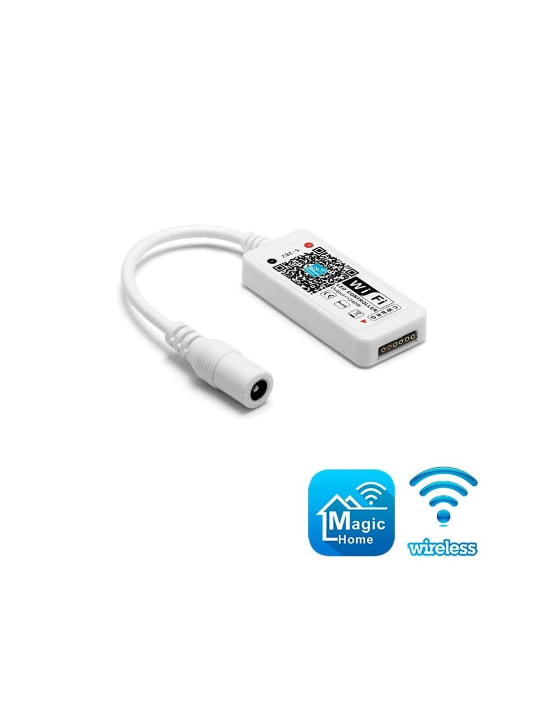 WiFi SMART контроллер RGBWC 5-in-1 светодиодных лент. Поддерживает типы светодиодов: SMD5050. Управление яркостью и температурой цвета. Приложение Magic Home Pro для смартфона/планшета с iOS/Android. WiFi 2,4 ГГц, 802.11 b/g/n. Питание 5В-28В DC. Мощность нагрузки 240 Вт. Интеграция с IFTTT, Google Home и Alexa. Размеры (ДхШхВ): 53х24х11 мм, вес 0,05 кг.