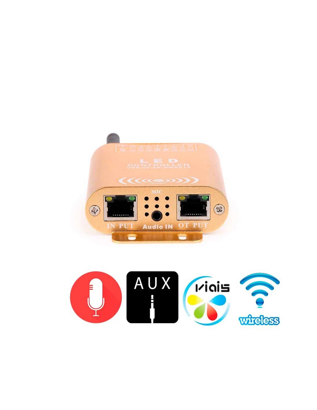 Наличие сразу двух аудиовходов (микрофон и AUX) обеспечивает максимально удобную инсталляцию контроллера, в зависимости от расположения источников аудио. Вы можете подключить динамики и мобильные телефоны через аудио-разъем 3,5 мм. Музыка приятно управляет световыми сполохами и переливами!